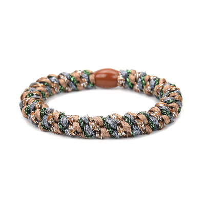 Denne flotte hårelastik er lavet i det meget populære snoet design, der er lavet med en kraftig elastik, som er betrukket med et farvet bånd. Elastikken er med til at pifte dit outfit op, samtidig med den holder dit hår på plads. Den kan bruges i både tykt og tyndt hår, og snoet omkring håret så mange gange du ønsker, til den har det ønskede hold på håret. Denne elastik er lavet i et fint design med brun, grøn og blå farver.