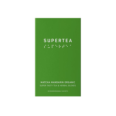 Matcha Mandarin Organic fra Teministeriets Supertea-serie er en te baseret på økologiske urter og naturlige aromaer. Den indeholder blandt andet grøn te, appelsinskal og matchapulver. Teen har et naturligt indhold af koffein, som virker opkvikkende på krop og sind. Derudover kommer den i en stilfuld, grøn æske, som uden tvivl til pynte på køkkenbordet.