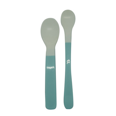 Den anden ske er lavet med et lidt bredere hoved og er god til lidt mere trænet børn, der måske har lært at spise noget selv.