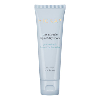 Hickap Tiny Miracle Lips & Dry Spots er en vegansk universalcreme, der blødgør og fugter sprukne læber og tørre hudområder. Den rige, salve-lignende formel er beriget med E-vitamin, som beroliger og beskytter følsom hud.