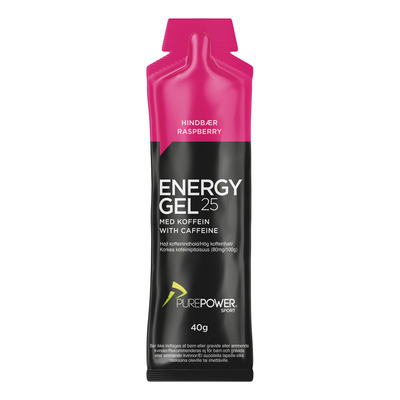 PurePower Energy Gel hindbær er en energigel med koffein, udviklet til brug under træning og konkurrence. Gelen har en flydende konsistens, der gør den nem at indtage på farten, uden behov for vand. Den indeholder hurtigt optagelige kulhydrater, som giver kroppen den nødvendige energi, samt 80 mg koffein pr. 100 g, som virker opkvikkende. Gelen er velegnet til både korte og lange præstationer og bør indtages i god tid for optimal effekt.